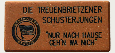 Fanstein – das PrinzipGeben Sie Ihren Fans und Freunden die Möglichkeit, mit dem Erwerb eines Original Fansteins ihre Treue und Loyalität zum Verein auf einzigartige Weise zu verewigen. Die Erlöse fließen Ihrem Verein zu und ermöglichen Ihnen damit die Verwirklichung Ihrer Träume, von bislang noch nicht realisierten Bauvorhaben über die Unterstützung der Jugendarbeit bis hin zur Finanzierung von Fanprojekten. Jeder Stein ist einzigartig, aber doch Teil des Ganzen! Was gibt es Besseres für Ihre Fans, Unterstützer und Sponsoren als die wirklich bleibende Nennung ihres Namen in Verbindung mit Ihrem Verein auf Flächen in unmittelbarer Nähe Ihres Stadions oder Ihrer Spielstätte? Eben! Und Ihnen als Verein eröffnen sich damit große Chancen zur Erzielung zusätzlicher Einnahmen, die Ihnen die Umsetzung Ihres Traumvorhabens tatsächlich ermöglichen werden. Erhöhen Sie mit einem Fanstein-Projekt die Bindung Ihrer Fans, Förderer und Sponsoren an Ihren Verein und schaffen Sie mit den hierfür eingehenden Mitteln die finanziellen Voraussetzungen für die Erfüllung Ihres Traumes. ![]() Nie war es so schön zu zeigen, wessen Fan man ist! Jeder Original Fanstein ist ein Unikat, auf dem Namen und ganz persönliche Botschaften enthalten sind. Die Verlegung dieser Liebes- oder Sympathieerklärung „in Stein“ erfolgt auf repräsentativen Gehwegen und Plätzen oder auch Wänden am beziehungsweise in der Nähe Ihres Stadions oder Ihrer Spielstätte. Aber natürlich auch an allen anderen Orten, die Ihnen und Ihren Fans besonders am Herzen liegen. Unser Original Fanstein ist ein lasergravierter Klinker aus deutscher Produktion mit - bis zu 3 Zeilen Text und/oder Grafik bei jeweils max. 18 Zeichen je Zeile - beliebige Grafiken nach Ihren Wünschen - freie Auswahl des Zeichensatzes - alle Abbildungen in hoher Schärfe und ausgezeichneter Qualität - beste Witterungs- und Alterungsbeständigkeit unter Einhaltung der gängigen deutschen und EU-Richtlinien und bei - nicht zuletzt - kurzen Lieferzeiten. (Andere Materialien auch für Innenbereiche bspw. Keramik sind in Vorbereitung.) ![]() Idee suchen, haben Sie mit unserem Original Fanstein das geeignete Produkt gefunden. Fordern Sie jetzt Ihre persönliche Musterkalkulation an! |